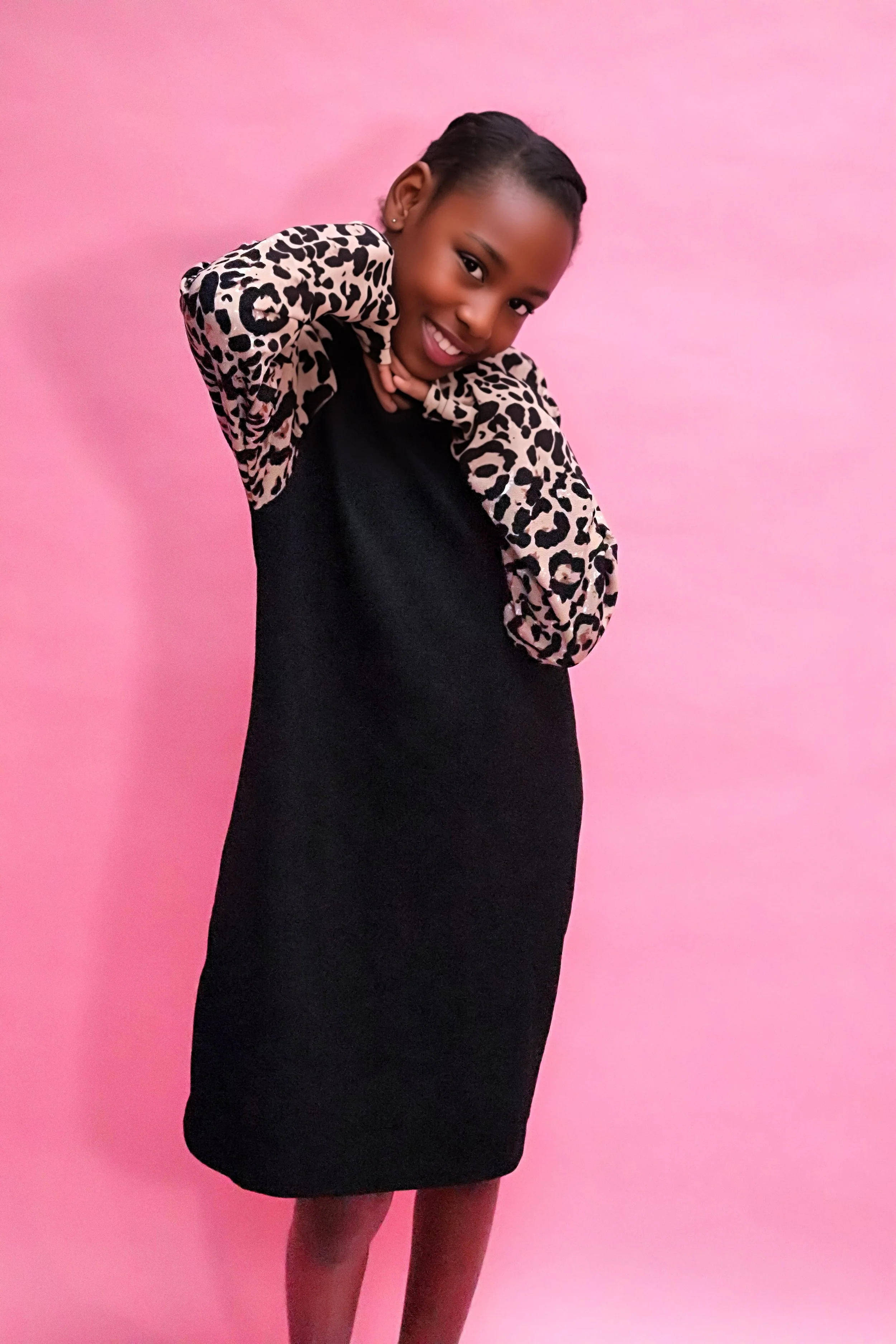 Image 1 of 3 Image 2 of 3 Image 3 of 3 Girls Elegant Leopard Print Sleeve Dress Crew Neck £15.00 Size: 8 Years 9 Years 10 Years 11-12 Years 13-14 Years Quantity: Pre- Order Added!